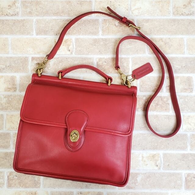 オールドコーチ ☆USA製 ウィリス ターンロック レザー 2WAY ショルダーバッグ レッド coach