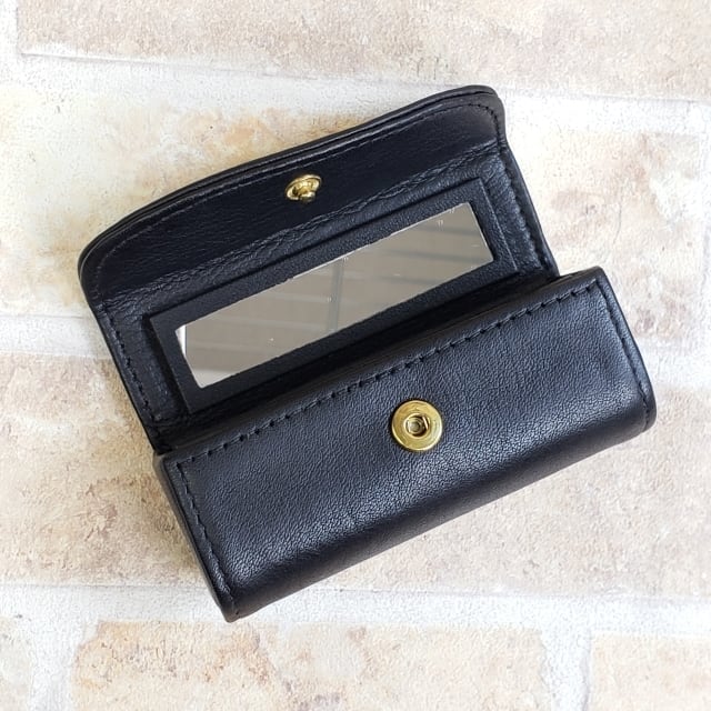 未使用 オールドコーチ ☆ レザー リップケース 小物入れ ミラー付き ブラック