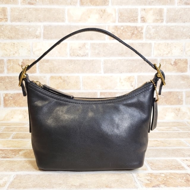 ・ブラックレザーがシックなビンテージ/ヴィンテージのコーチ、オールドコーチのミニ ハンドバッグです。