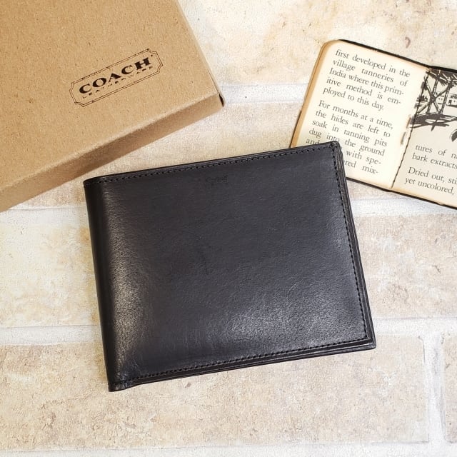 デッドストック! 未使用 オールドコーチ ☆レザー 2つ折り 札入れ 折財布 ブラック coach ユニセックス