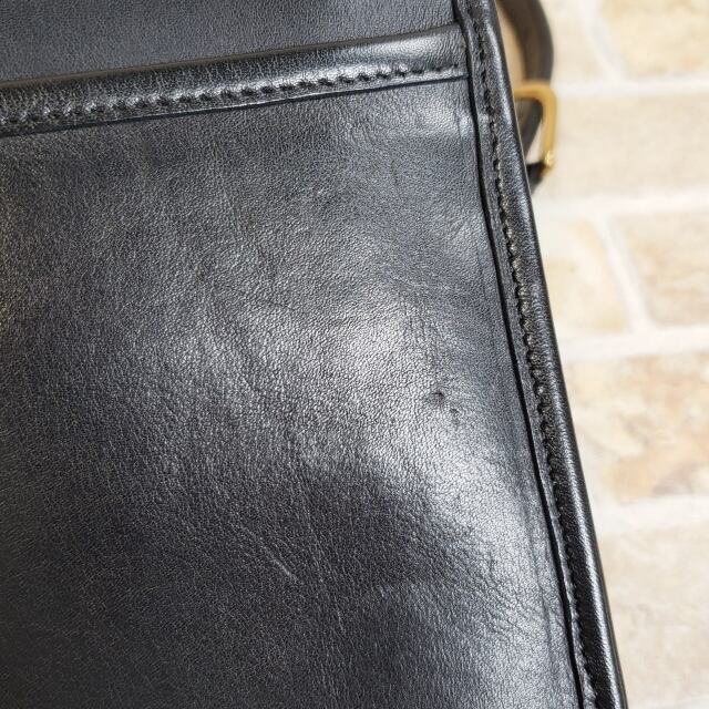 外装レザー全体に軽いスレ・スレによる退色、線状の薄いスレ、細かな圧迫痕があります。(特に底のコーナー辺りに退色があります。画像参照)