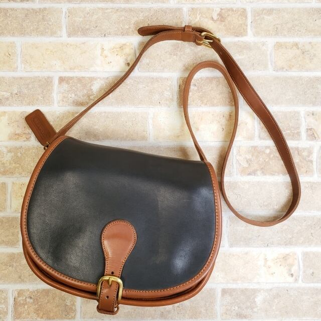 オールドコーチ ☆ USA製 レザー フラップ ショルダーバッグ バイカラー ブラック ブラウン ユニセックス COACH コーチ