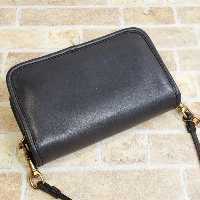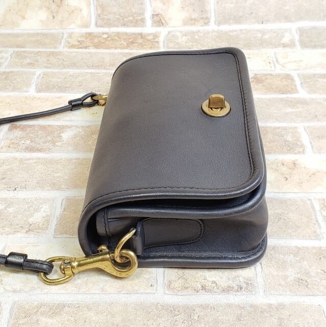 レア! オールドコーチ ☆USA製 NY刻印 レザー ターンロック がま口 ミニ ショルダーバッグ ブラック