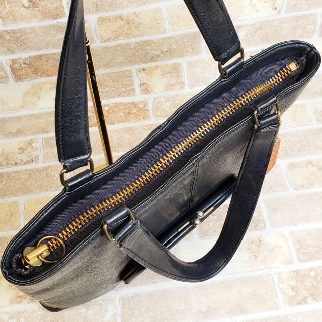 レア! オールドコーチ ☆NY刻印 USA製 レザー がま口 ボニーカシン スキニートート ブラック トートバッグ