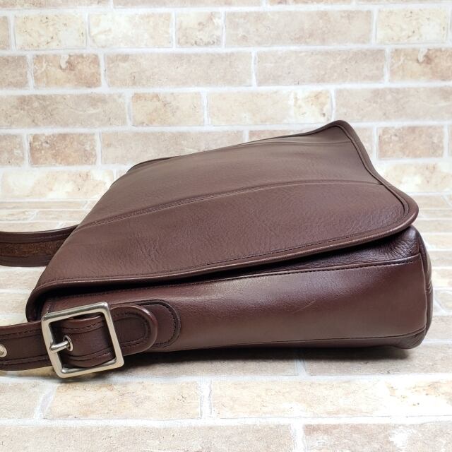 オールドコーチ ☆ USA製 レザー フラップデザイン ショルダーバッグ A4OK ダークブラウン ユニセックス