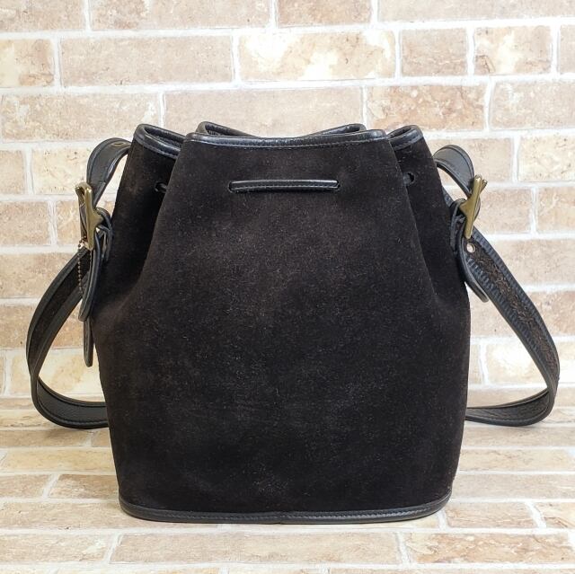 レア! オールドコーチ ☆ USA製 バークレーシリーズ バックスキン 巾着 ショルダーバッグ ブラック スエードレザー