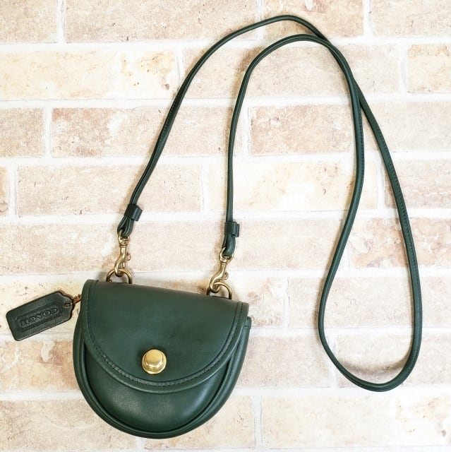 美品 オールドコーチ ☆USA製 レザー ミニ ショルダーバッグ ドイツホック グリーン ウエストバッグ