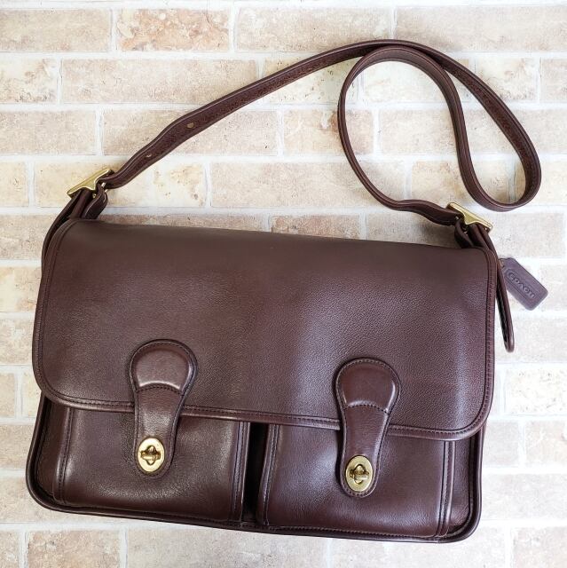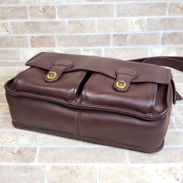 オールドコーチ ☆ USA製 ターンロック レザー ショルダーバッグ A4OK ダークブラウン コーチ coach ユニセックス