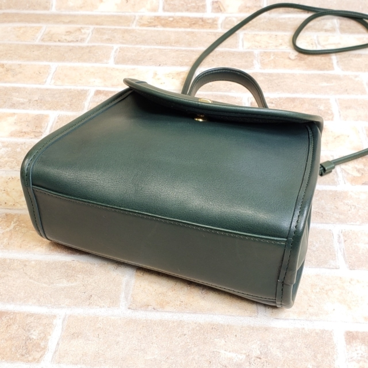 美品 オールドコーチ ☆ USA製 レザー ターンロック 2WAY ミニ ショルダーバッグ グリーン ハンドバッグ
