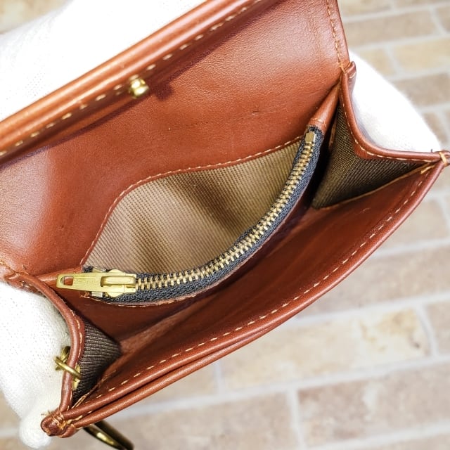 ・ビンテージ/ヴィンテージのコーチ、オールドコーチの シュリンクレザー 折財布/コインケースです。キーリング付きで、ユニセックスで使っていただけます。
