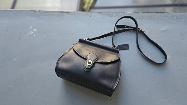美品 オールドコーチ ☆ USA製 ターンロック レザー ショルダーバッグ ブラック ユニセックス