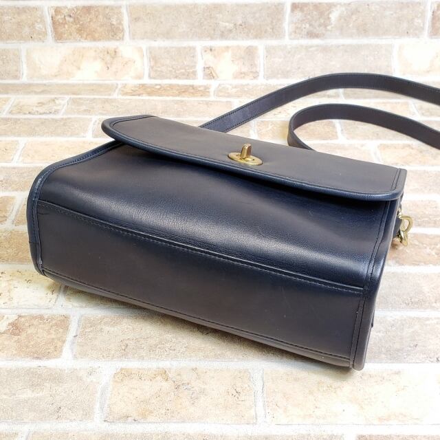 美品 オールドコーチ ☆ USA製 レザー ターンロック 2WAY ショルダーバッグ ネイビー ユニセックス
