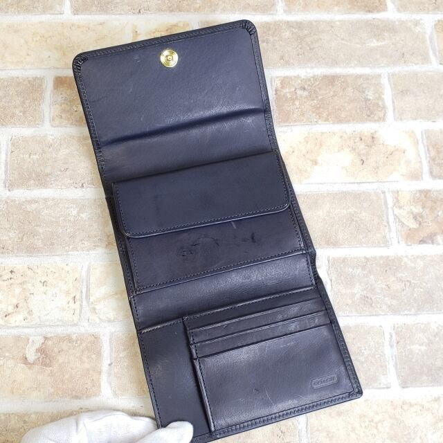 極美品 オールドコーチ ☆レザー 2つ折り 札入れ 折財布 ダークネイビー coach ユニセックス