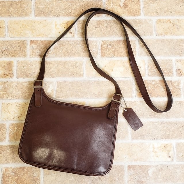 オールドコーチ ☆ レザー 薄マチ ミニ ショルダーバッグ ダークブラウン ユニセックス コーチ COACH ヴィンテージ