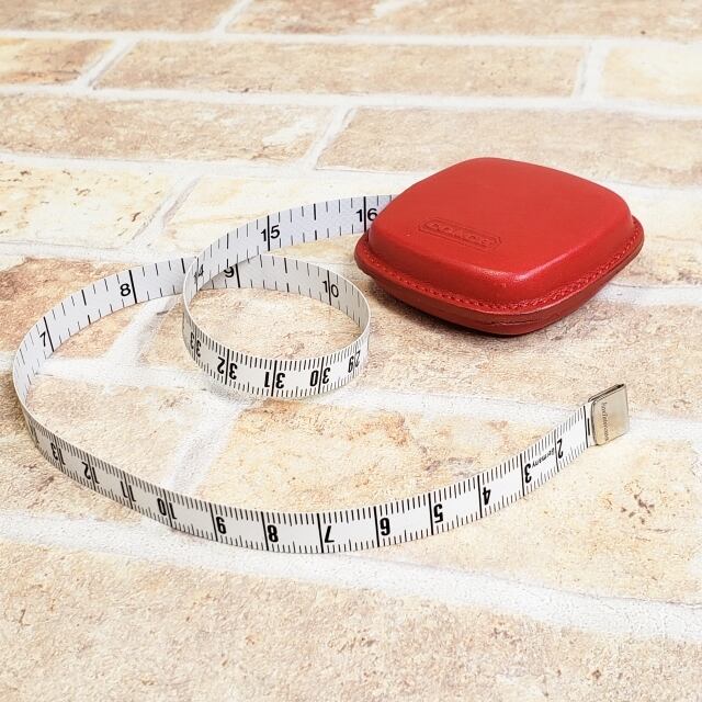 ・ ビンテージ/ヴィンテージのコーチ、オールドコーチ のレザー 両面タイプ 自動巻き取り式 テープメジャー 巻尺です。ユニセックスでおすすめです。