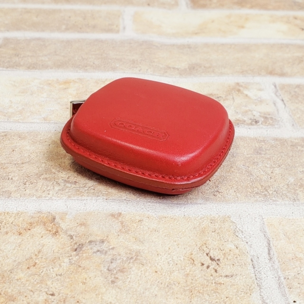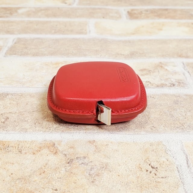 美品 オールドコーチ ☆ レザー 自動巻き取り式 テープ メジャー 巻尺 レッド COACH