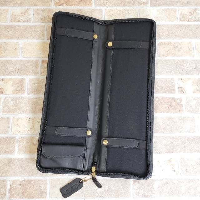 ・ネクタイが2本収納できるビンテージ/ヴィンテージのコーチ、オールドコーチ ネクタイケースです。ネクタイピン等小物をいれるのに便利な内ポケット付きです。