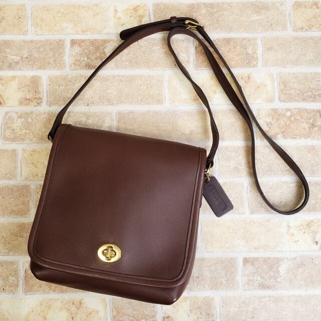 極美品 オールドコーチ ☆ USA製 レザー ターンロック ショルダーバッグ ダークブラウン 小ぶり COACH ユニセックス