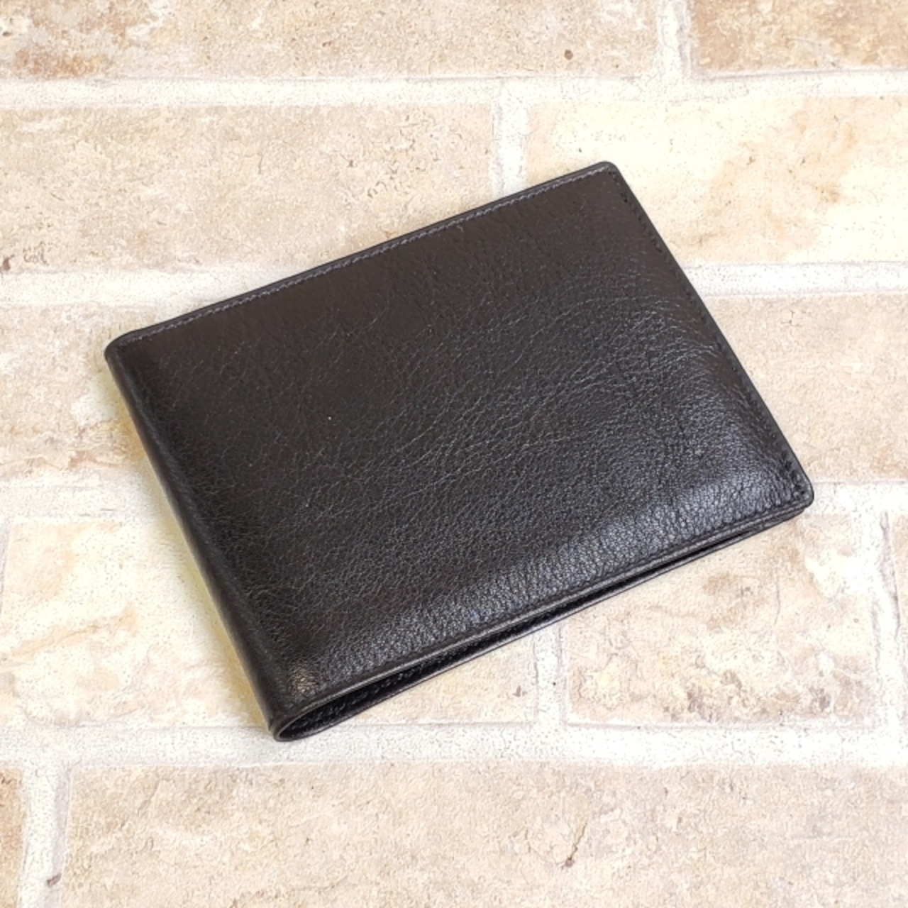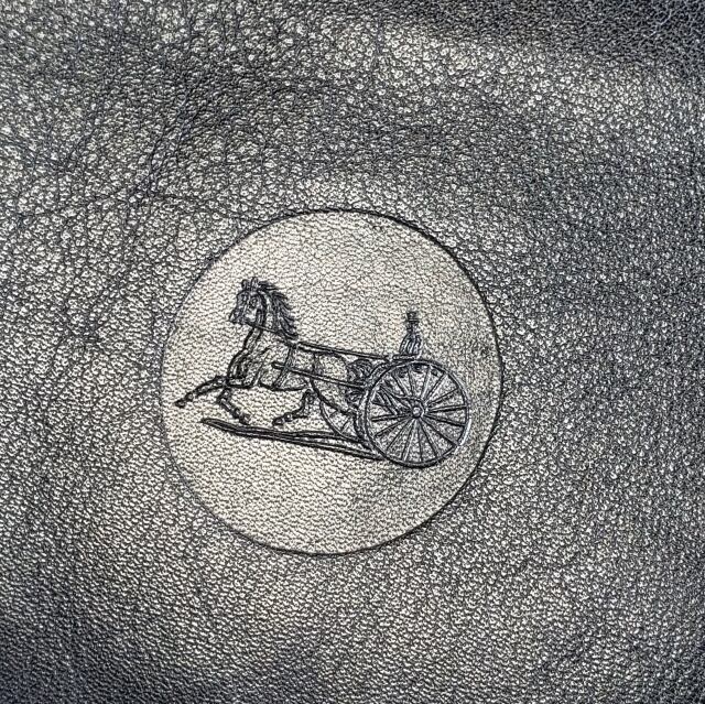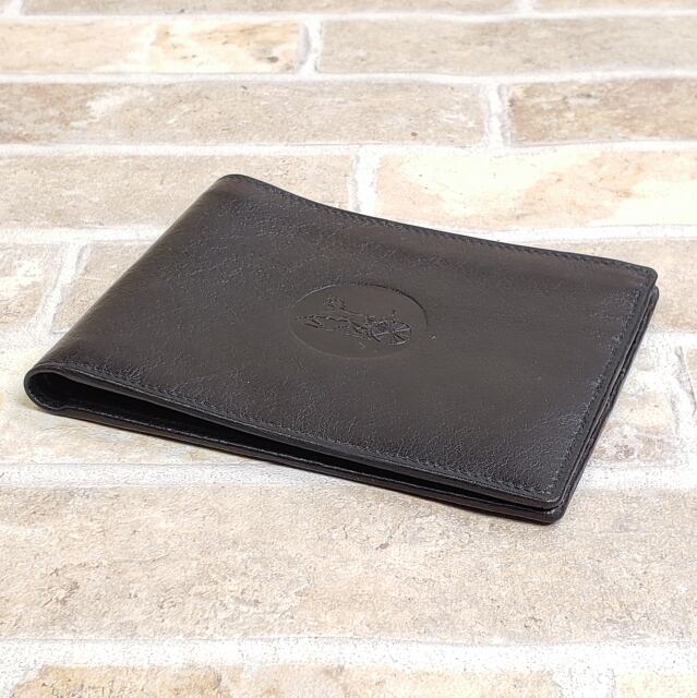 ・中央のロゴ型押しデザインが素敵な ヴィンテージ レザー 二折財布 / 札入れ です。