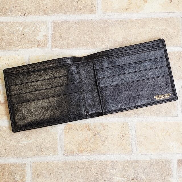 美品 セリーヌ CELINE ☆ ヴィンテージ レザー 二折財布 札入れ イタリア製 ブラック 財布