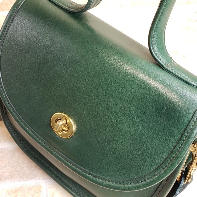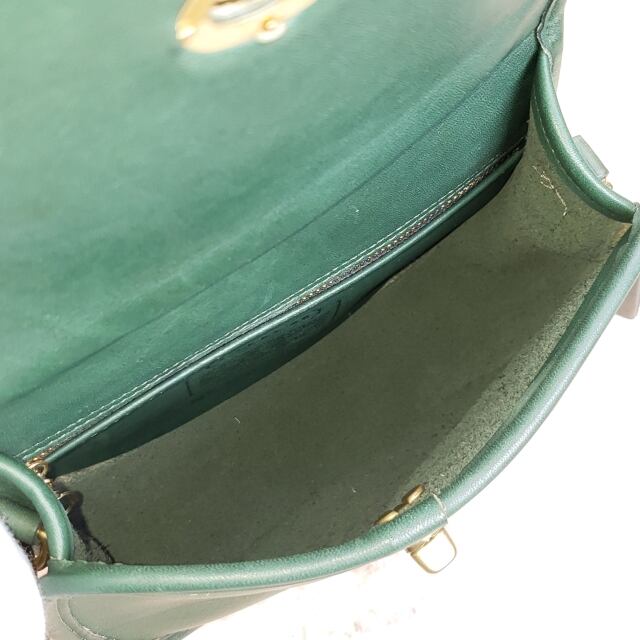 オールドコーチ ☆ USA製 ターンロック レザー 2WAY ハンドバッグ ショルダーバッグ 小ぶり グリーン