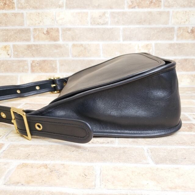 美品 オールドコーチ ☆ レザー フラップデザイン ショルダーバッグ ブラック ユニセックス