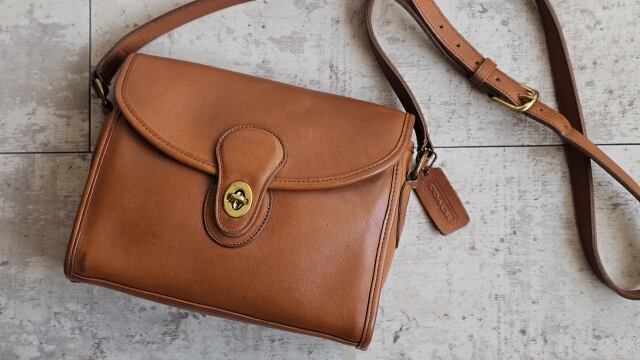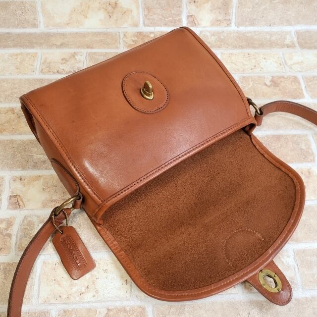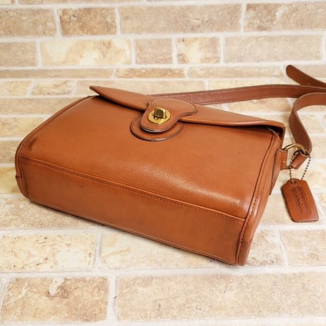 オールドコーチ ☆ USA製 ターンロック レザー ショルダーバッグ キャメルブラウン 小ぶり