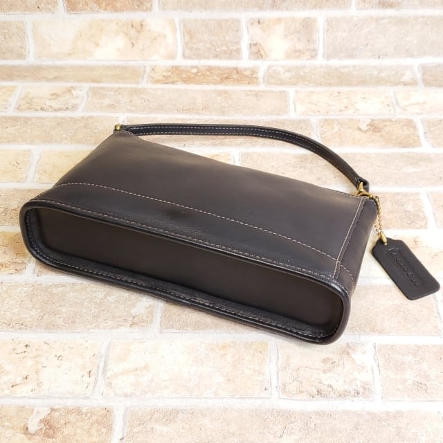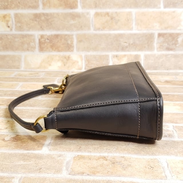 未使用 オールドコーチ ☆ USA製 レザー ポーチ ステッチデザイン ミニ ハンドバッグ ブラック BLEECKER DEMI ZIP COACH コーチ