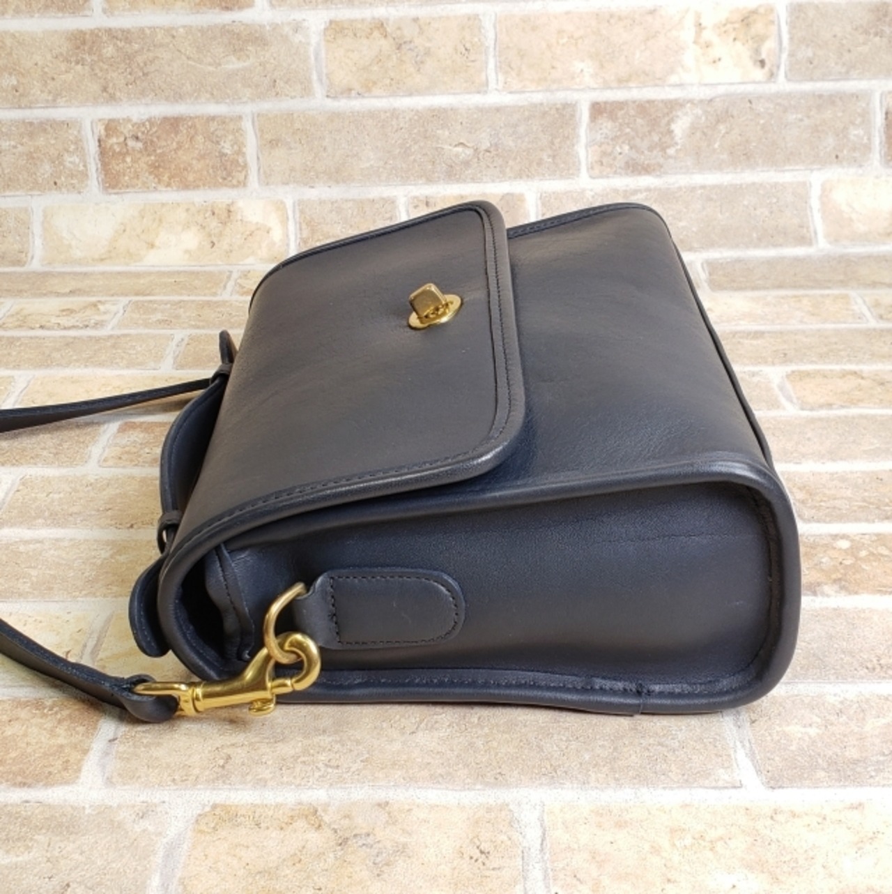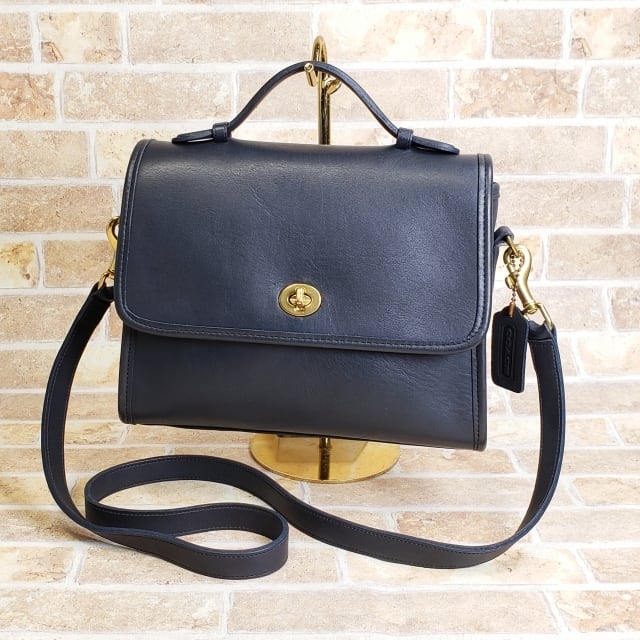 美品 オールドコーチ ☆ USA製 レザー ターンロック 2WAY ショルダーバッグ ネイビー ユニセックス