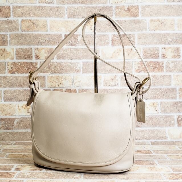 オールドコーチ ☆ USA製 レザー フラップデザイン ショルダーバッグ アイボリー ユニセックス