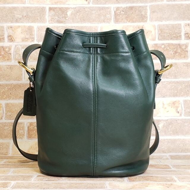 オールドコーチ ☆ USA製 レザー 巾着 ショルダーバッグ グリーン コーチ COACH ユニセックス