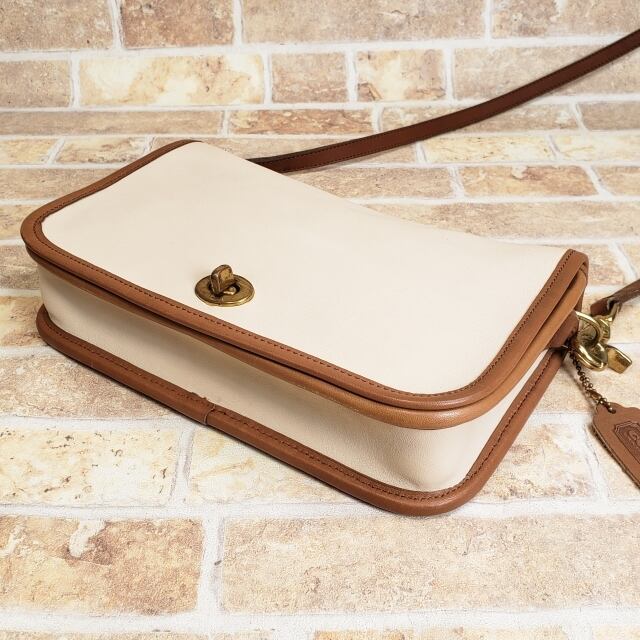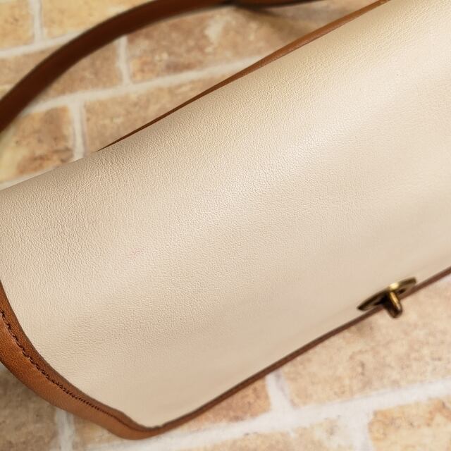 極美品 オールドコーチ ☆NY刻印 USA製 レザー ターンロック バイカラー ショルダーバッグ アイボリー COACH