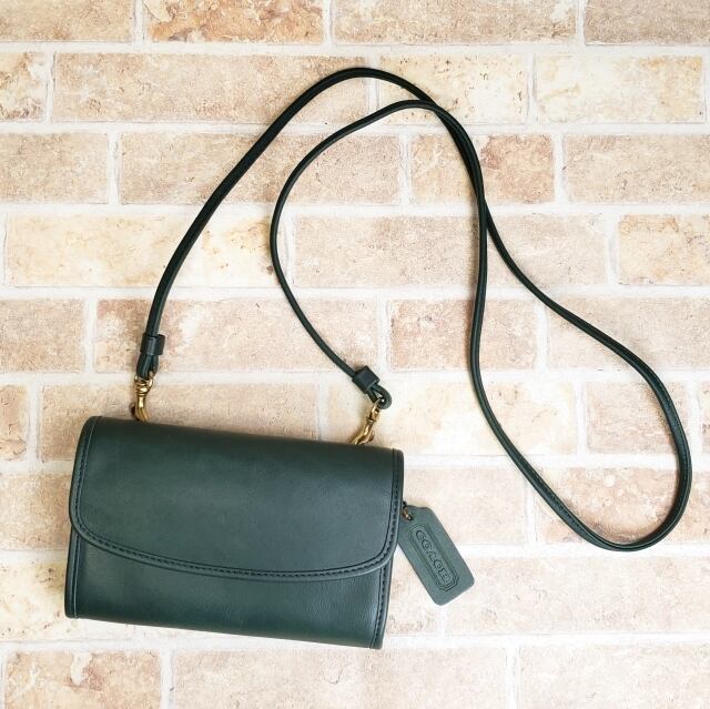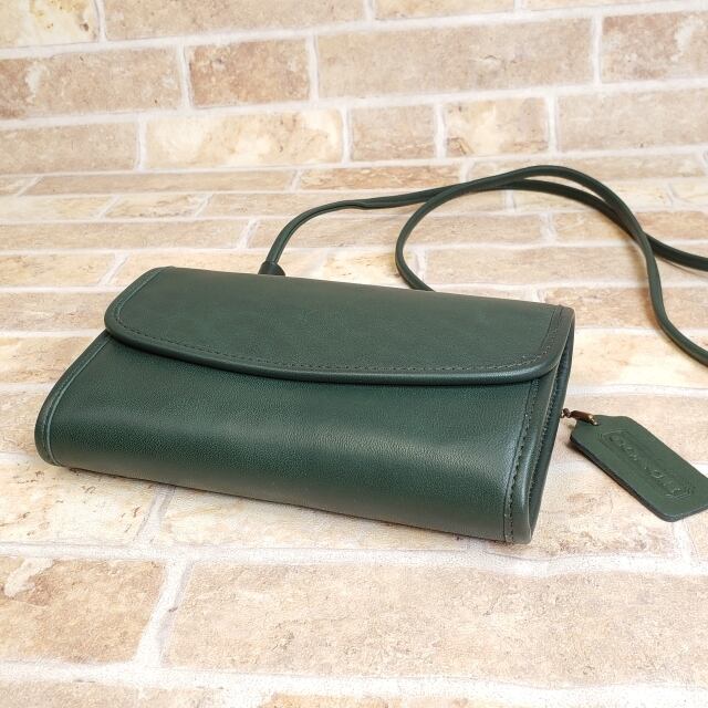 極美品 オールドコーチ ☆ レザー ミニ ショルダーバッグ ポシェット グリーン 財布