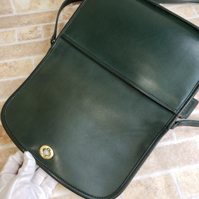 オールドコーチ ☆ USA製 ターンロック レザー ショルダーバッグ グリーン ユニセックス COACH コーチ