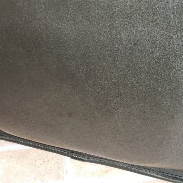 外装レザー全体所々、特にフロント左下広範囲に黒っぽいシミがあります。(画像参照)