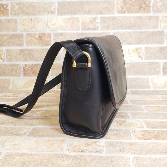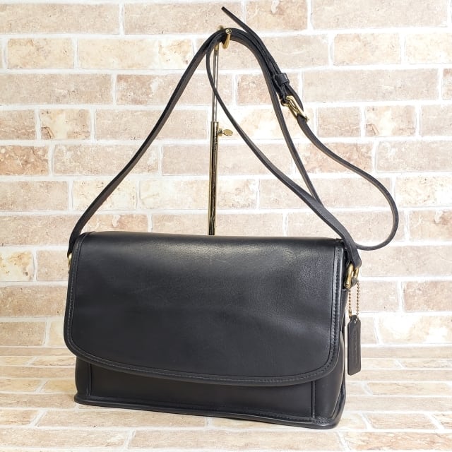 オールドコーチ ☆ USA製 レザー フラップ ショルダーバッグ ブラック ユニセックス