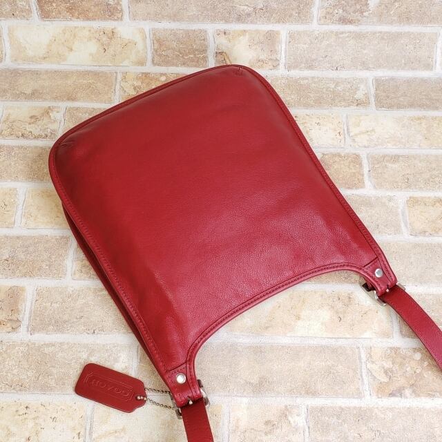 オールドコーチ ☆ レザー 薄マチ ショルダーバッグ レッド ユニセックス コーチ COACH ヴィンテージ