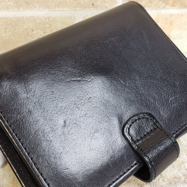 外装レザー全体にスレ、線状のスレ、細かな圧迫痕、スレによる軽い退色があります。(画像参照)