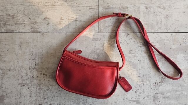 オールドコーチ ☆ USA製 レザー ミニ ショルダーバッグ レッド 小ぶり