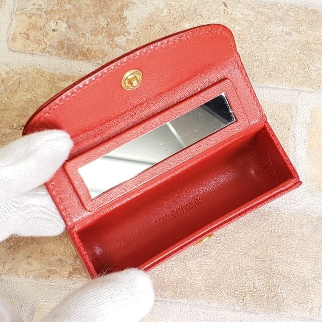 美品 オールドコーチ ☆ イタリア製 レザー リップケース 小物入れ ミラー付き レッド