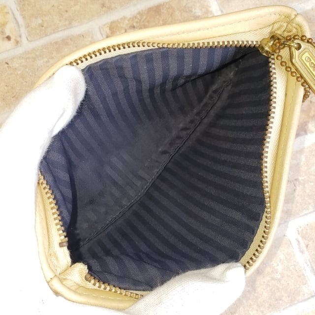 オールドコーチ ☆ イタリア製 シュリンクレザー ポーチ マルチケース アイボリー ユニセックス