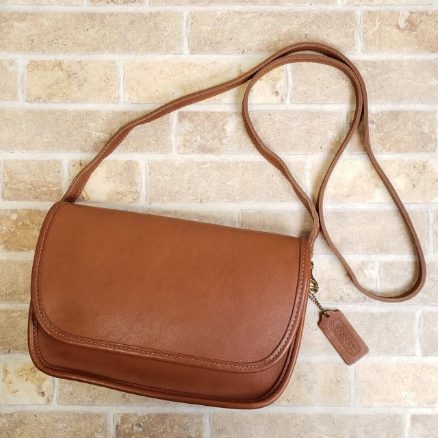 オールドコーチ ☆ USA製 レザー フラップデザイン ミニ ショルダーバッグ ブラウン ユニセックス
