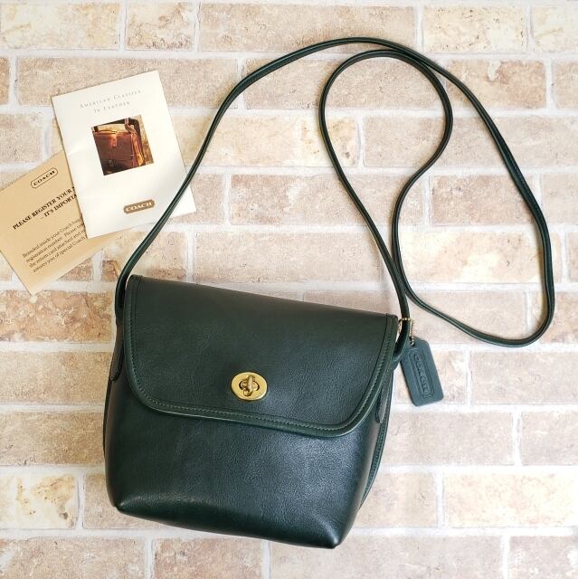 オールドコーチ ☆ USA製 ターンロック ショルダーバッグ グリーン 小ぶり ポシェット